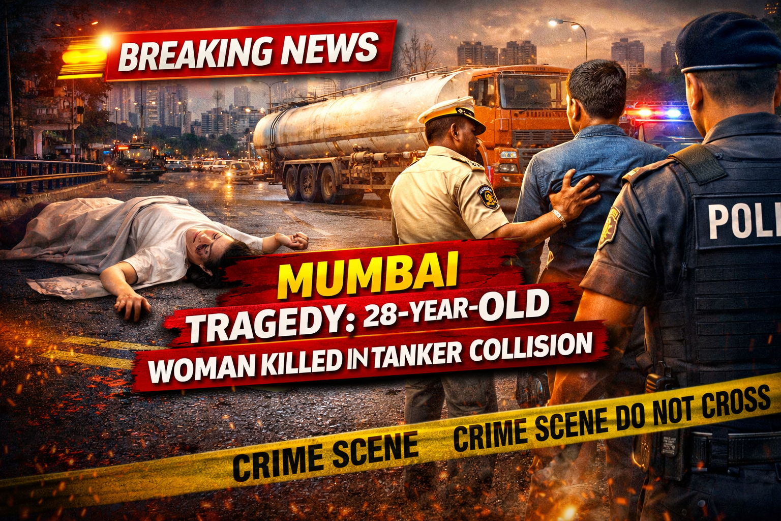 рдорд╣рд╛рд░рд╛рд╖реНрдЯреНрд░ рдХреА рд░рд╛рдЬрдзрд╛рдиреА Mumbai рдореЗрдВ рдПрдХ рджрд░реНрджрдирд╛рдХ рд╕рдбрд╝рдХ рд╣рд╛рджрд╕рд╛ рд╕рд╛рдордиреЗ рдЖрдпрд╛ рд╣реИ, рдЬрд┐рд╕рдореЗрдВ 28 рд╡рд░реНрд╖реАрдп рдорд╣рд┐рд▓рд╛ рдХреА рдЯреИрдВрдХрд░ рд╕реЗ рдЯрдХреНрдХрд░ рдХреЗ рдмрд╛рдж рдореМрдд рд╣реЛ рдЧрдИред